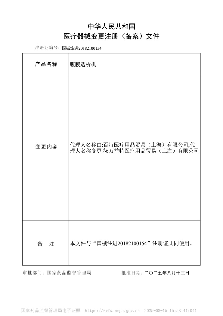 该产品用于临床对肾功能衰竭患者进行自动腹膜透析治疗。